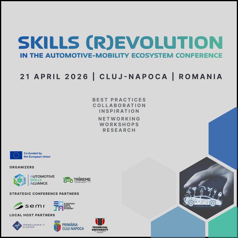 Skills (R)Evolution is a European conference series dedicated to the future of skills in the automotive-mobility ecosystem and related strategic industries. It brings together policymakers, industry leaders, social partners, clusters, universities, training providers, regional actors, researchers, and project representatives to discuss how Europe can prepare its workforce for the green and digital transition.